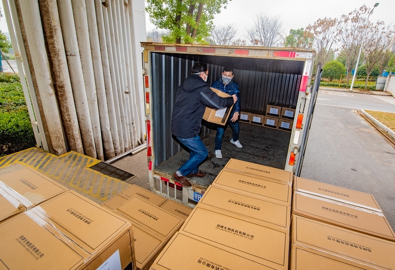 大年初三,第一批采購藥材從山東、河北、安徽紛紛抵達公司,第一批馳援武漢疫區的藥品送到醫護人員手中。