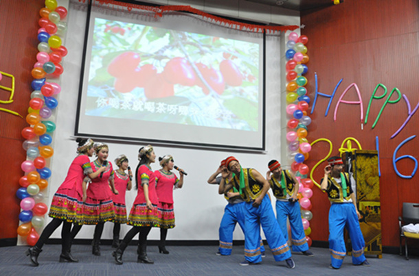 元旦晚會以一曲熱情洋溢的舞蹈《LUV》拉開了序幕。隨后,令人捧腹的小品、婀娜多姿的舞蹈、飽含深情的歌聲,一次次將晚會推向高潮。特別是悅耳的《十口茶》、逗樂的《新白娘子新編》,融入生物醫藥公司產品元素,在歡樂中進一步宣傳了產品。最后,一曲《相親相愛》拉近了所有人的距離,“我們是一家人,相親相愛的一家人”,道出了生物醫藥這個大家庭的心聲:我們是一起為共同的事業而努力奮斗的一家人!